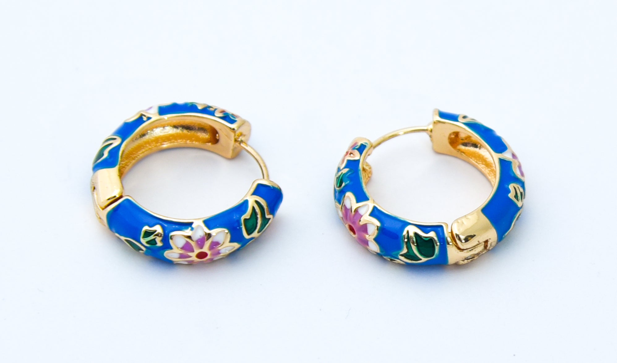 Blue Enamel Floral Loop Earrings